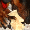 home. Java and Corndog compete for the chews, but Cornie has learned to give