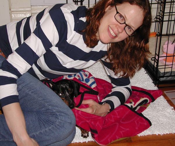 Carol after the vet school appointment. Carol was very happy. Corn Dog was